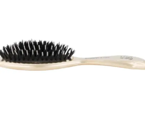 Das pneumatische Latexkissen bietet echten Styling-Komfort. Die Borsten sind mit einer Mischung aus Nylonfasern und Nylonperlen gefüllt, die das Haar entwirren und die Kopfhaut massieren.