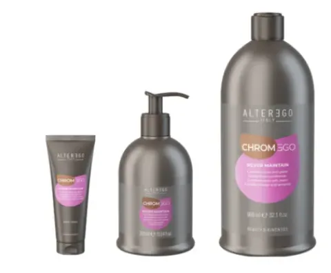 Der ChromEgo Silver Maintain Conditioner ist mit einem violetten Pigment formuliert und intensiviert die natürliche oder kosmetische Haarfarbe und neutralisiert unerwünschte Gelbtöne. Er spendet Feuchtigkeit und pflegt das Haar, macht es leicht, seidig und glänzend.
