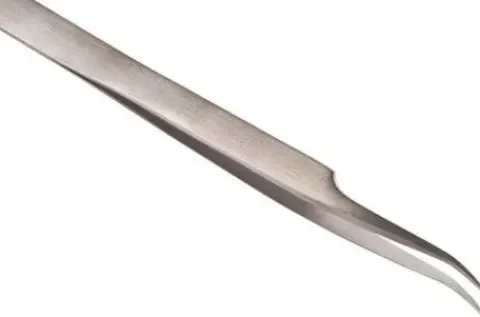 Filigrane Wimpernpinzette mit leicht gebogener Spitze aus rostfreiem Edelstahl.