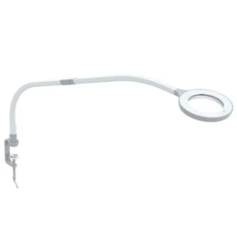 Eine kompakte und leichte Lupenleuchte für unterwegs. Der helle Tageslicht-LED-Ring um die Vergrösserungslinse sorgt für eine gleichmässige Ausleuchtung für präzise Kontrollen und Erkennen feinster Details. Das frei bewegliche Kopfgelenk und der 68 cm lange Arm mit 2 flexiblen Abschnitten ermöglichen eine genaue Positionierung.