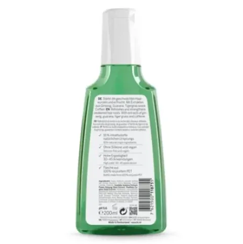 Und das ganz ohne Silikone sowie mit einer geballten Ladung Natur: Der leichte Coffein-Conditioner mit Ginseng ist vegan und besteht zu 97 % aus Inhaltsstoffen natürlichen Ursprungs, darunter anregendes Coffein und Daikonöl sowie kostbare Extrakte aus Ginseng, Guarana, Brennnessel und Erbsensprosse. Der vitalisierende Duft nach Zitrusfrüchten, Minze und Ingwer gibt unter der Dusche einen angenehmen Frische-Kick. Hergestellt in Kreuzlingen, natürlich aus der Schweiz.