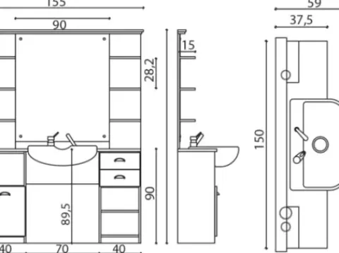 - Masse: B 154 x T 59 x H 204 cm