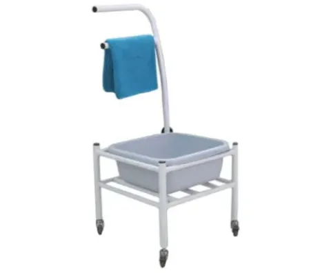 Praktischer Rollwagen mit Griff und Handtuchhalter. Inkl. Fussbadewanne.