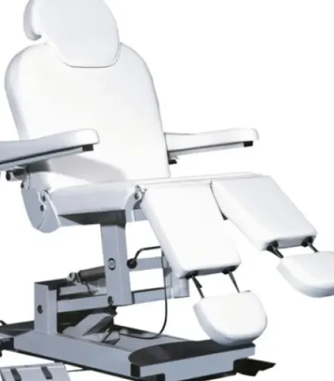 Sie können diesen Stuhl neben Fusspflegebehandlungen auch noch für Massageanwendungen verwenden. Denn dank der flach verstellbaren Rückenlehne können sie ihn in die Massageposition bringen. Für die optimale Liegeposition des Patienten sorgt hier das verstellbare Kopfteil.